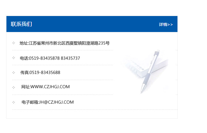 傳真:0519-83435688    郵編:213135    網址:WWW.czjhgj_com.whguanghe.com    電子郵箱:JH@czjhgj_com.whguanghe.com